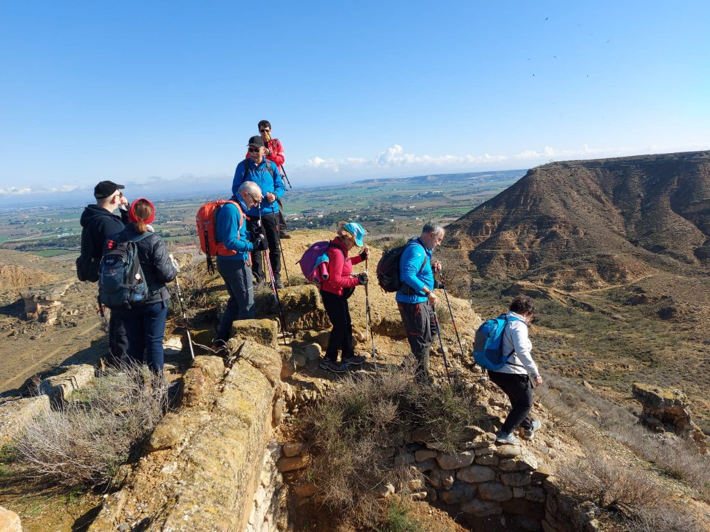 Una vez más, y van dos, María y Laura nos pusieron a prueba. Estas dos jóvenes guías de la Marcha Nórdica de Montañeros de Aragón de Barbastro deleitaron a la treintena de marchadores en la visita al monte de Binaced. De nuevo, un carrusel circular que copiaba el recorrido de una prueba de trail que se celebrará el domingo 16 y como es habitual en estas pruebas, había hasta cinco cotas de altura que más recuerdan una Marcha Quebrantahuesos con duros puertos que un tranquilo paseo aunque nunca dejó de ser eso, un tranquilo paseo. Antes de abandonar la ermita de Santa Ana todo el mundo se asomó a sus ventanas para admirar una construcción a la que hubo quienes compararon con el arte de Le Corbusier por su diseño futurista y vidrieras multicolor.