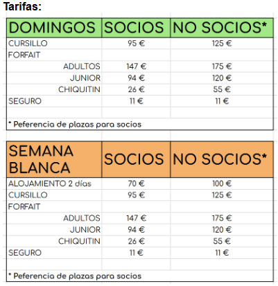 SE RECUERDA QUE PARA PODER ACCCEDER A LOS REMONTES DE LA ESTACIÓN PARA LA REALIZACIÓN DE LOS CURSILLOS, SEA CUAL SEA EL NIVEL, ES IMPRESCINDIBLE DISPONER DE FORFAIT. LA OPCIÓN DE «SOLO CURSILLO» ES PARA AQUELLOS QUE TENGAN SUS PROPIOS FORFAITS.