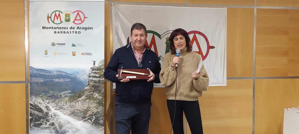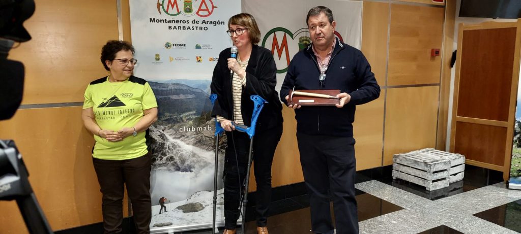 A María Añaños Sahún, Cope Alto Aragón, por su importante grado de colaboración con el club y por la divulgación desde las ondas de todas las actividades de montañismo organizadas por nuestro club. Resaltar que en el año 2024 cumple su 25 aniversario fundacional como emisora en Barbastro de la Cadena Cope.